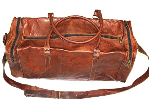 -. Brand : HLC -. Department : mens -. Feature : Handmade Leather Bag Crafted By Experienced Craftsmen in India / 54 Inch Long Adjustable Shoulder Broad Strap / Real Brass metal and steel accessories used in this Bag / Material-100% Genuine Real Goat hide ( sustained ) / 3 Compartments Inside With Green Color Strong Canvas Lining -. ProductGroup : Apparel -. ProductTypeName : LAGE -. Title : HLC-(Handmade Leather Craft) Men's Travel Lage Duffle Bag