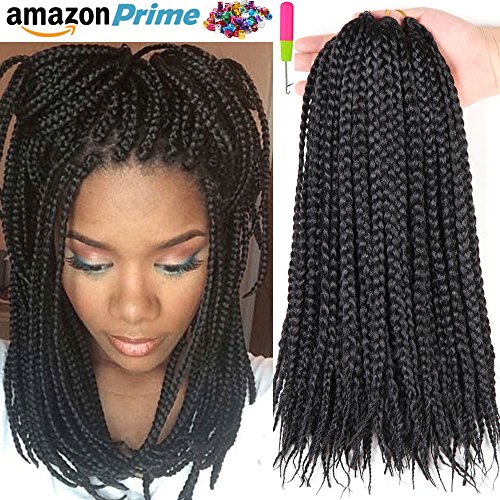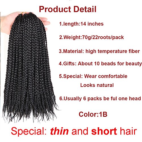 6 packs 14" Box Braids Crochet Braids 70g 22 Strands/pack Synthetic Braiding Hair Extension (1B)