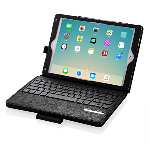 -. Feature : Convenient Bluetooth iPad Keyboard Case: Easy fitting and pairing with iPad 9.7" 2017 / iPad Pro 9.7-inch / iPad Air / iPad Air 2 / iPad 5 / iPad 6. With up to 33ft working range, ideal for business travel and daily use. / Removable Wireless Keyboard: Built-in ABS Chiclet Keys for comfortable and efficient typing. It also works with iPhone, iPad mini 1/2/3/4, iPad Pro 12.9 inch and other iOS Bluetooth devices. / Full-Body Protection: Premium PU leather folio smart case maximum protects your iPad Air / Air 2 / Pro 9.7" / iPad 9.7" 2017 well. The adjustable stand gives you a best angle for reading, watching, playing with your iPad. / Intelligent Automatic Features: Automatically sleep / wake your iPad up when you closing or opening it. Intelligent reconnect your iPad when you are going to typing with Bluetooth keyboard. / Longest Battery Life: Built-in rechargeable lithium polymer battery with energy-saving function, up to 110+ hours Lasting Working Time, 888+ hours Standby Time and only 2 hours to full charge.