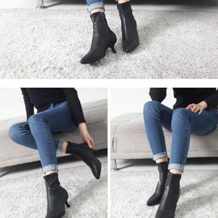 商品名:ストレッチブーツ レディース ポインテッドトゥ ピンヒール ローヒール 2017 秋冬 ファッション 靴 婦人靴