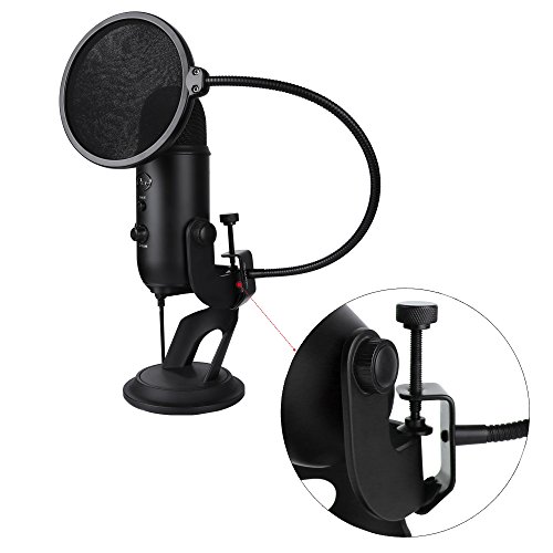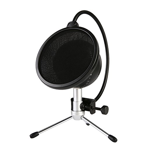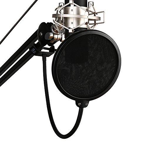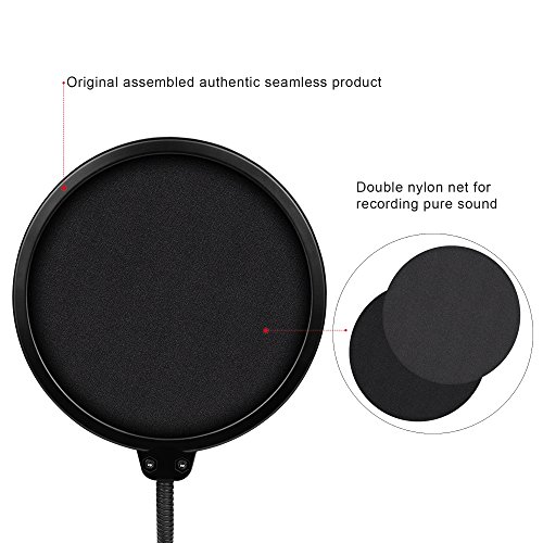 BC Master Pop Filter for Blue Yeti Snowball , Metal Stand Clip,Studio Microphone Recording Pure Sound Durable Material Double Nylon Net (5-inch) PF12