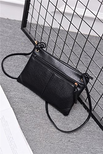 -. Feature : Material : Soft PU leather, Polyester lining, smooth and durable. / Structure: 1 large main zipper pocket, with 1 secret zipper pocket and 1 card holder compartment inside, external with 1 zipper pocket, 1 shoulder strap included. / Size and weight : (L)10.2 x (H)6.7x (D)0.78 inches, Only 0.39 pounds weight. / The length of the shoulder strap is 125cm, Tied the shoulder strap with your love knot before you wear the crossbody bag. / Zipper closure, Organize big smartphone, wallet, keys, cards,small cosmetics necessities, tissue, etc.