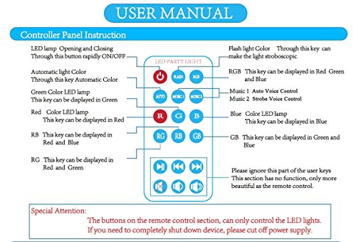 STROBE LIGHT or NIGHT LIGHT: NOT ONLY a disco ball light, lights flash to music beat(under music-mode) creat your a dancing floor. lights strobe auto(under flash-mode) creat you a dance party.light lit up your whole living room(under auto-mode)creat your kids a good night.