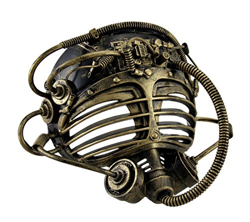 -. Feature : 9.5 in. Long, 7 in. High, 4.5 in. Wide / Creatively Crafted of Flexible Plastic Materials in Sculpted Steampunk Detail with Silken Ribbon Ties For a Comfortable Custom Fit / Faux Aged Metallic Finish w/Gears, Cogs, Tubes, Puzzle Pieces and a Circuit Card Detail Perfect For Most Any Steampunk Attire Any Time of Year / Great for Halloween, Parties, Conventions, Festivals, Raves and More / Perfect and Fun For Halloween and Eliminates the Need For Makeup