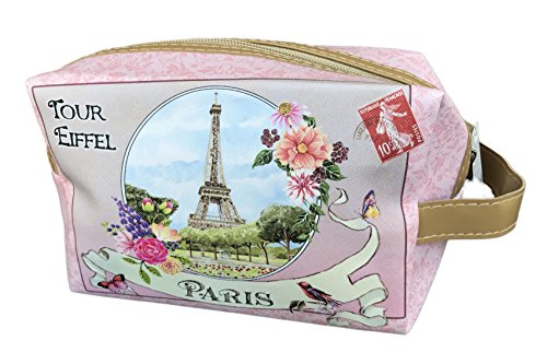Chic Paris Tour Eiffel Pink Cosmetic Travel Organizer Bag with Handle
