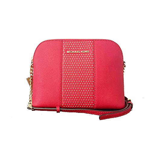 -. Brand : Michael Kors -. Department : womens -. Feature : Saffiano leather with gold-tone hardware; stud detailing / 9"W x 7"H x 3 ½"D / Adjustable chain-embellished shoulder strap with 23"-25" drop / Top zip closure / Interior features 1 zip pocket and 1 slip pocket -. Model : 32H5GM2C3L -. ProductGroup : Shoes -. ProductTypeName : HANDBAG -. Title : MICHAEL Michael Kors Cynthia Microstud Cindy Large Dome Crossbody