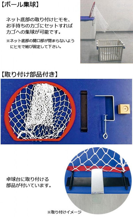 左右のコーナーやセンターなどに打ち分ける練習ができます。正確なスマッシュやサーブを打つトレーニングに最適です。ボールは集球ネットでキャッチしますので、下にお手持ちのカゴをセットすればカゴへの集球が可能です。 |
