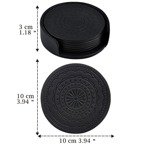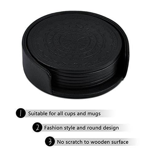 -. Brand : SPSHENG -. Color : 2.black -. EAN : 0601263754053 -. Feature : HEAT RESISTANT-Give you permission to set down your hot drink glass cups / WATER RESISTANT-Our coasters prevent water rings from forming on glass and high gloss furniture / GREAT GIFT IDEA-Handmade drink coasters are a great medium to express your creativity / LIGHTWEIGHT YET DURABLE-Easy to use and clear,Set of 6.Cup dimensions: 3.94" X 3.94" X 1.18" / 100% Manufacturer's Warranty-If our coasters does not meet your expectations, please contact us freely -. Model : A002-Black -. ProductGroup : Kitchen -. ProductTypeName : KITCHEN -. Size : one size -. Title : Coasters,PU Leather Coasters for Drinks Glasses Set of 6 with Holder Round Black -. UPC : 601263754053
