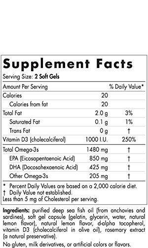 AN ULTIMATE FORMULA 2:1 - Nordic Naturals Ultimate Omega contains 3500 mgs of omega-3s. A serving of Ultimate Omega that surpases the daily recommended dose suggested by the American Heart Association and has been shown to support a healthy heart. Each teaspoon has a 2:1 EPA to DHA, 30% more EPA per serving than Ultimate Omega for healthy heart function. It also has 1000 I.U. natural vitamin D3 (cholecalciferol) to help in bone maintenance.