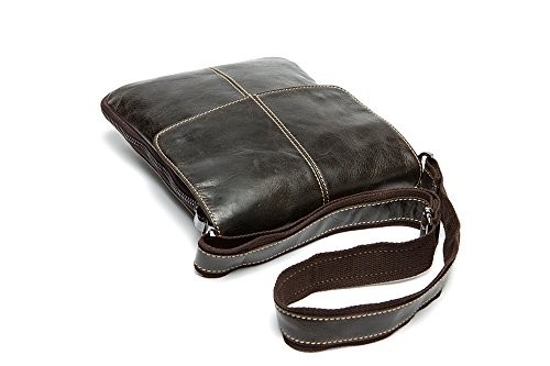-. Feature : Outside material:high quality genuine leather. Neri:polyester fabrics / Size:8.7x0.6x10inch(closed) Weight:440g adjustable shoulder strap those most length is 98.5inch fits most adults using.And,two metal buckles are available on both sides,you can according to your habit to connect ones and strap. / Functional Design:Each pocket has easy access.This bag is light weight and convenient to carry away.What's more,wear comfortablly,suit for all occasion,many things you need can be easily put into pockets,such as cellphone,wallet,credit card,etc. / Following is size detail:Face up,the closed bag is like a grid of four equal parts.Open magnetic buckle,there is a pocket (8.5x7.7inch) and a zip pocket (8.5x7.7inch). Open zipper,you will find easily that two small cubicles 9(2.5x4.5inch)and a pocket(5.5x5.2inch) with zipper.Finishly,in back of bag has a zip pocket (6.7x5.3inch).Please allow for manual measurement errors. / On the one hand,the shoulder strap,strap hardware and bag accessory are high quality for pratical everyday use.On the other hand,metal zipper is excellent craftsmanship.In addition,bags' touch feeling is soft and smooth.