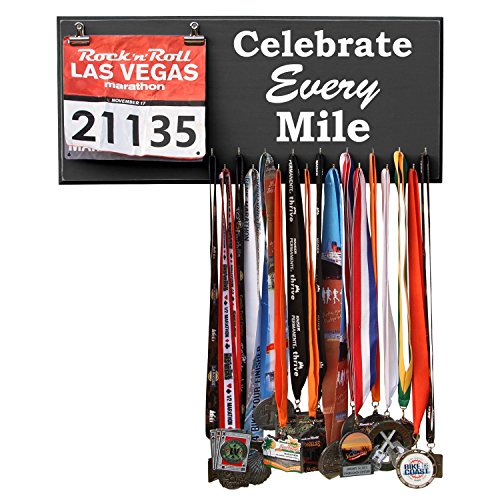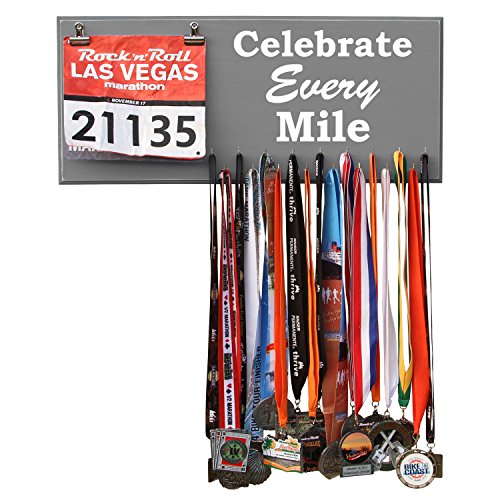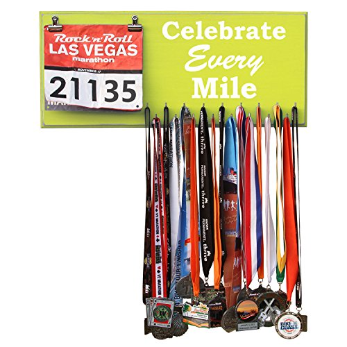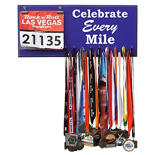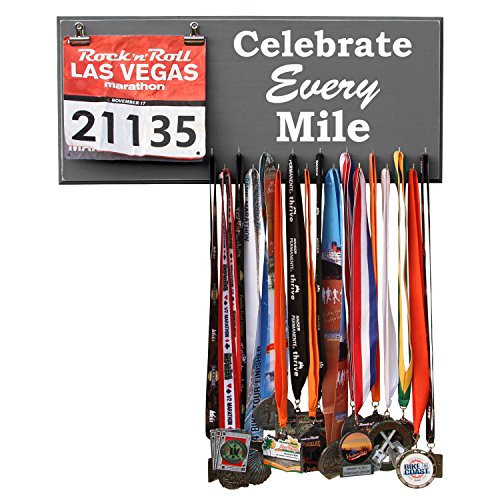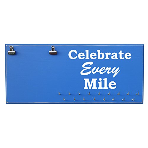 -. Binding : Misc. -. Brand : RunRilla -. Feature : Handmade in the USA. 23 inches width X 10 inches height X 3/4 inches thick MDF Wood / 17 hooks to show off your medals / Assembly of hooks are required. Hooks are removed to prevent damage during shipment. Holes are pre-drilled so the hooks can easily be installed. / Hand painted, beveled and distressed edge, premium vinyl lettering and 2 sawtooth hangers / Color unevenness and distress appearance may vary from the picture. Made in the USA -. Label : Runrilla -. Manufacturer : Runrilla -. MPN : 4122 -. PartNumber : 4122 -. ProductGroup : Sports -. ProductTypeName : SPORTING_GOODS -. Publisher : Runrilla -. Studio : Runrilla -. Title : Medal Hanger, Display, Holder - CELEBRATE EVERY MILE