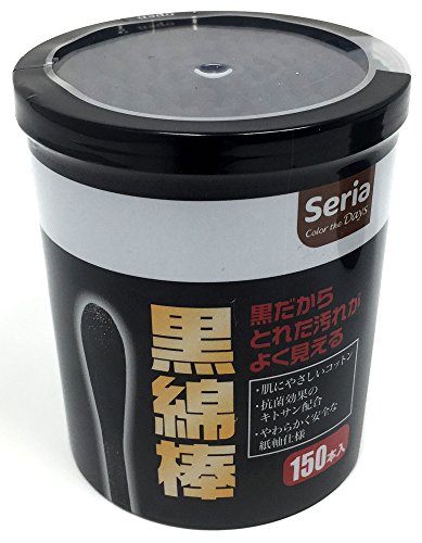 Disposable Cotton Swabs Paper Stick Cleaning Ear Cosmetic Cotton Buds with Storage Case [ 150 pcs ] Black
