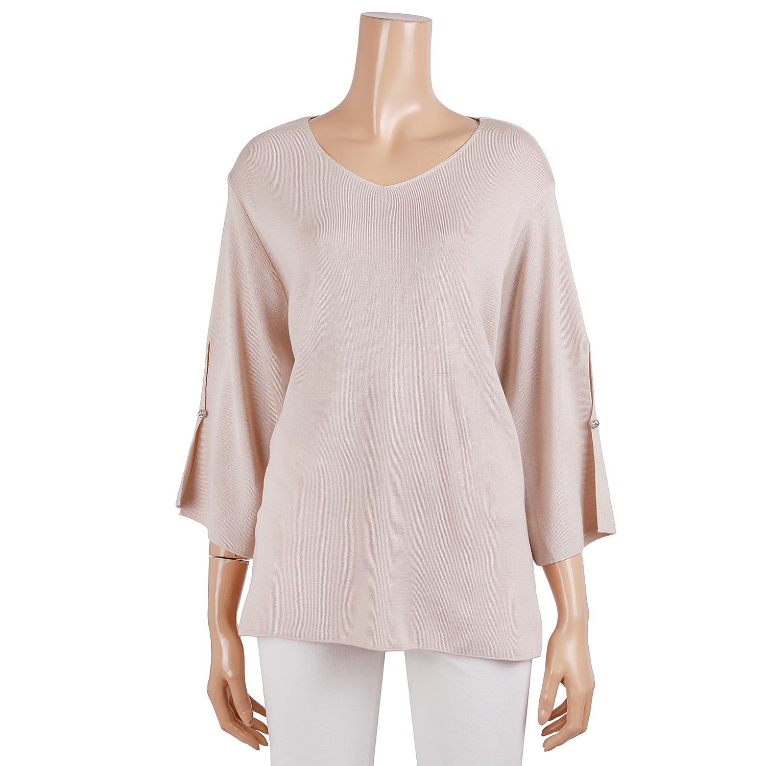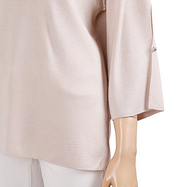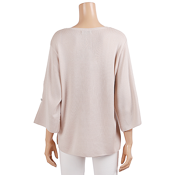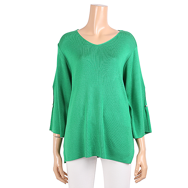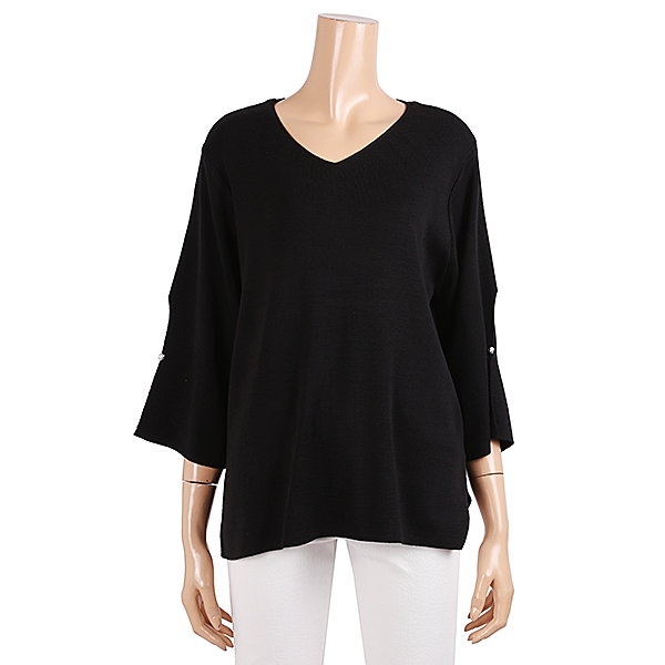 브이넥 니트 티셔츠로 목선이 시원하게 보이며 소매부분 절개로 여성스럽습니다