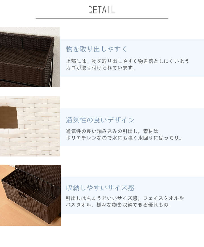 ●通気性の良い、引出しで水周りの収納もバッチリ!