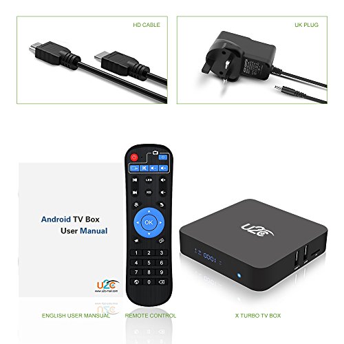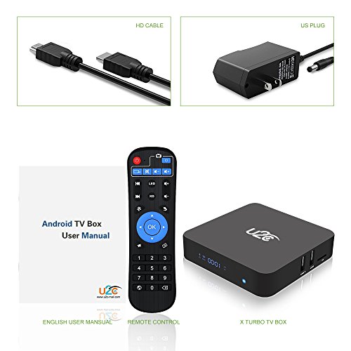 What You Get: ? U2C X Turbo android 7.1 Smart TV box ? Learning IR media remote (AAA batteries sold separately) ? HD Cable ? US plug 5V/2V power adapter ? User manual