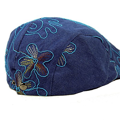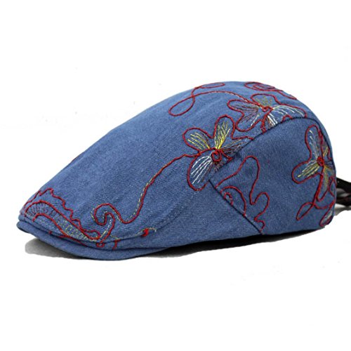 Binding : Apparel Product Description Applicable gender:female Applicable age:adult Material:denim Weaving methods:plain Popular element:embroidery Pattern:flower Suitable season:winter, spring, summer, autumn For gifts occasions:birthday, awards ceremony, fairs, employee benefits Eaves:curling Cap style:Dome Hat style:short eaves Color:blue, light blue, dark blue Size:adjustable