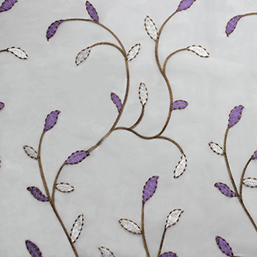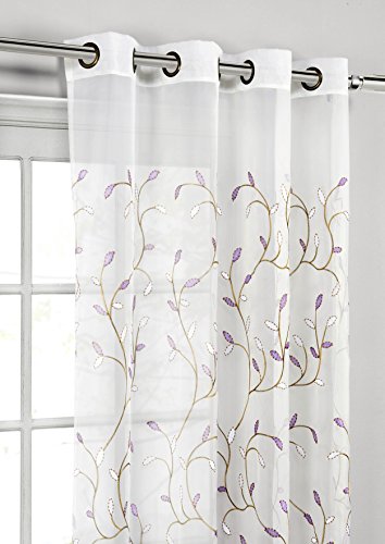 Window Elements Wavy Leaves Embroidered Sheer Extra Wide 54 x 84 in. Grommet Curtain Panel, Lilac