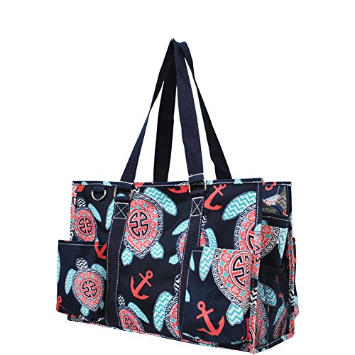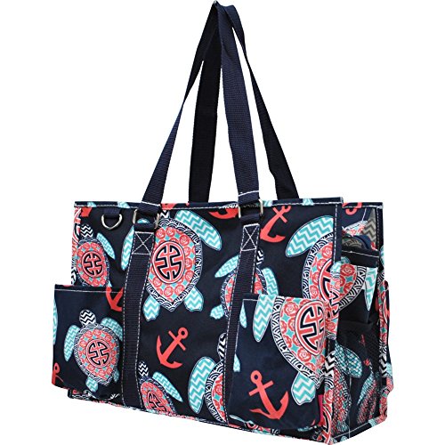 -. Title : Sea Turtle Anchor P.R.Int Zippered Caddy Organizer Tote Bag