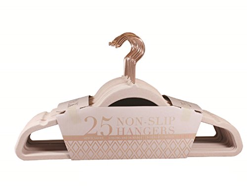 Signature Home Velvet Hangers with Copper Hooks Non Slip-Ultra Thin-Space Saver, Rose with Copper Hooks, 25 Piece
