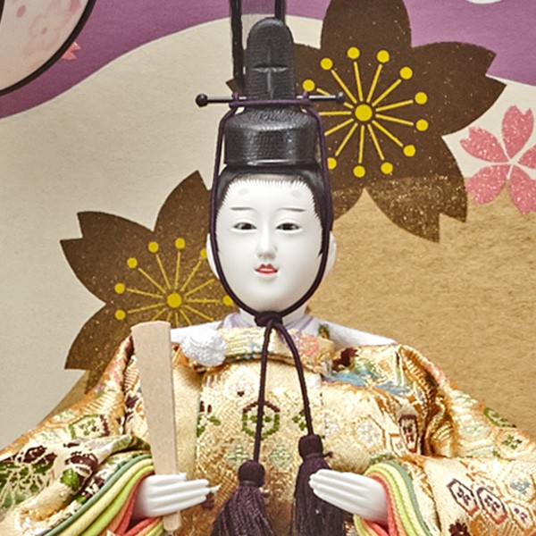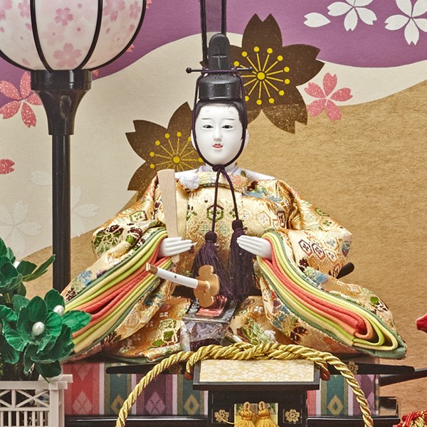 ・台座・屏風等には落ち着いた色目の雛人形セット。