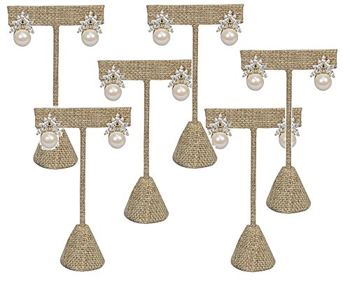 6 Burlap Fabric Earring T Stand Showcase Displays 6.75"