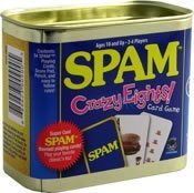 -. Feature : Packaged in a cool SPAMTM tin that is perfect for travel. / It's the super fun SPAM® themed Crazy Eights Card Game - great for the whole family! / Tin contains: SPAMTM Themed Playing Card Deck, Score Pad, Pencil, and EASY-TO-FOLLOW rules.
