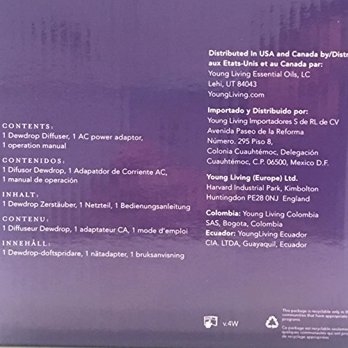 -. Binding : Health and Beauty -. Brand : Young Living -. EAN : 0781491645450 -. Feature : Young Living Essential Oil Diffuser with Dew Drop Design / Custom designed with up to four hours of continuous run diffusion / Has automatic shut-off / Has an ambient light control / Helps to create a spa-like and relaxing atmosphere -. IsAdultProduct : 0 -. Label : Young Living -. Manufacturer : Young Living -. Model : 5330 -. PackageQuantity : 1 -. ProductGroup : Health and Beauty -. ProductTypeName : HEALTH_PERSONAL_CARE -. Publisher : Young Living -. Studio : Young Living -. Title : Young Living Essential Oil Home Ultrasonic Diffuser with Dew Drop Design Tear Drop -. UPC : 781491645450