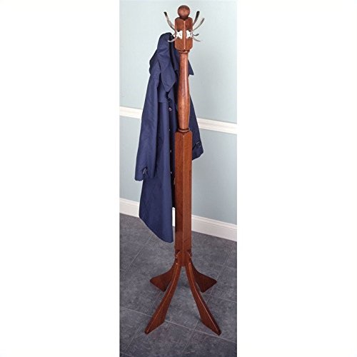 -. Feature : turned trunk and round finial / 4 chrome hooks / constructed from solid wood with a classic walnut finish