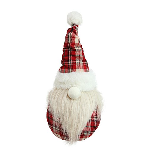 Northlight 11" Red and White Plaid Sitting Santa Gnome Plush Table Top Christmas Figure