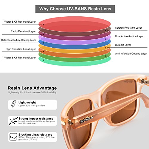 UV-BANS Men Sunglasses Polarized Women Retro Wayfarer Frame,TAC UV400 Protection