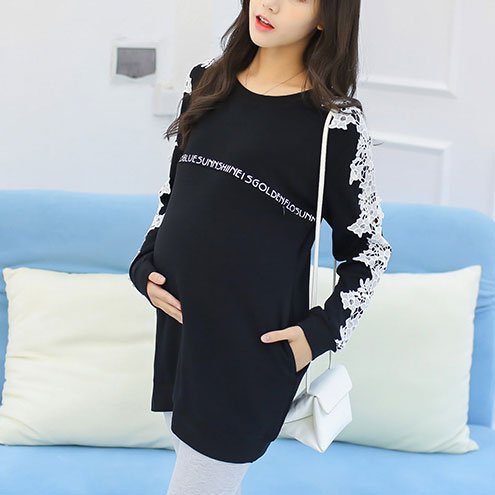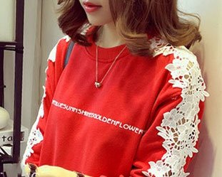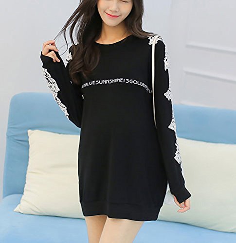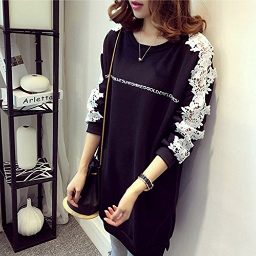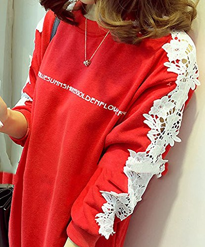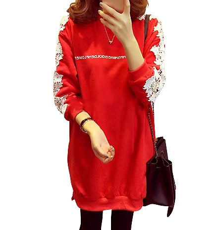 -. Title : セレクティア(SELECTIA) レディース 長袖 レース チュニック ファイン モデル 体型カバー カットソー トレーナー トップス ロゴ 2 色展開 (レッド 、ブラック)M~XXL