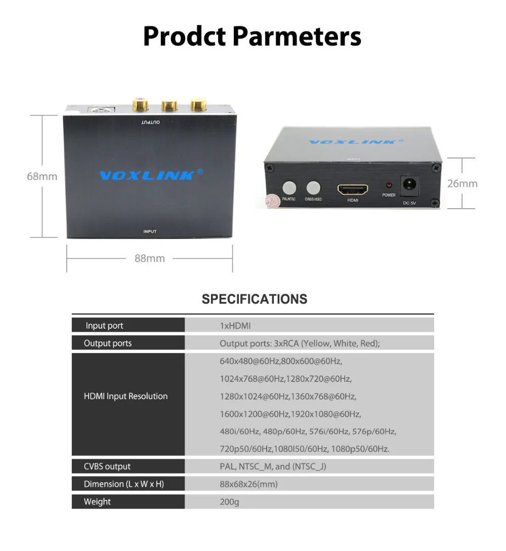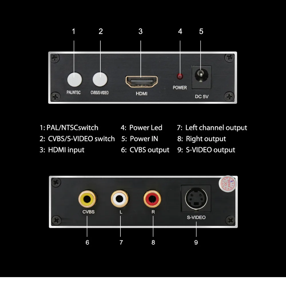 Type:HDMI to Composite 3RCA AV S-Video R/L Audio Video Converter