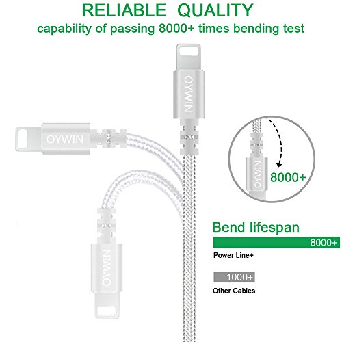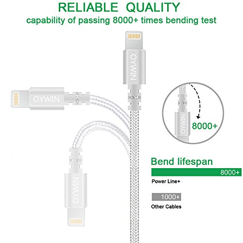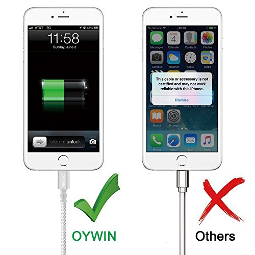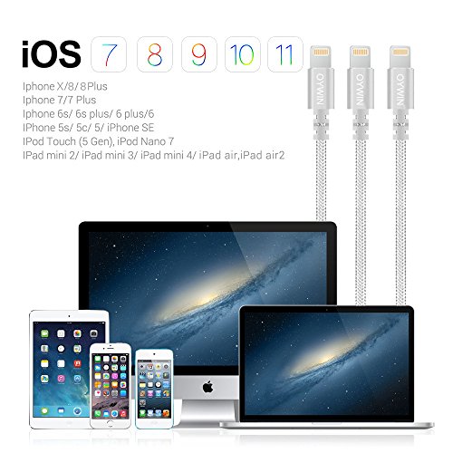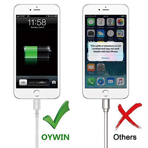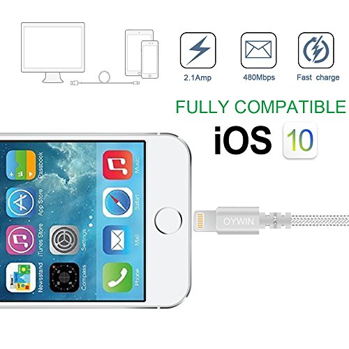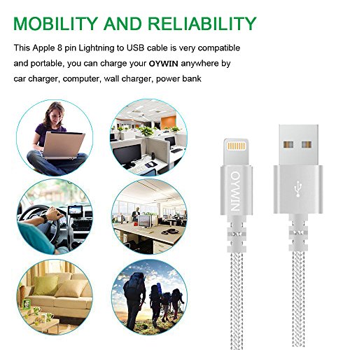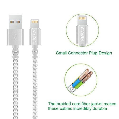 Studio : OYWIN Publisher : OYWIN Binding : Electronics Product Description Incredibly Durable The cable covered by high quality nylon braided material which is more durable than other plastic cable, prevent to bending or scratching. Constructed from heat-resistant connectors ensure complete safety and reliability. Lightweight and flexible to be coiled for portable carrying but tangle-free indeed. Perfect Length The 6 feet length of these charging cables allows you to move around freely as you charging your devices. Whether you are at home, at the office or back seat of car, you can enjoy complete freedom of movement. Never worry about sudden power off or short length. Package comes with three USB cables as a great backup, you can bring them where you need. Sync Charge Great performance with pure wire and standard 8 pin connector provides charging or syncing with your devices. Compatibility - Complete charge and sync compatibility with iPhone 7, iPhone 7 plus, iPhone 5, iPhone 5s, iPhone 5c, iPhone 6, iPhone 6 plus, iPhone 6s, iPhone 6s plus, iPhone SE. - iPad Pro, iPad Air, iPad Air 2, iPad mini, iPad mini 2, iPad mini 3, iPad mini 4, iPad 4. - iPod Touch (5 Gen), iPod Nano 7. - Compatible with the latest iOS10 without any error messages. What's in the box 3 X 6 Feet Nylon Braided Lightning USB Cables