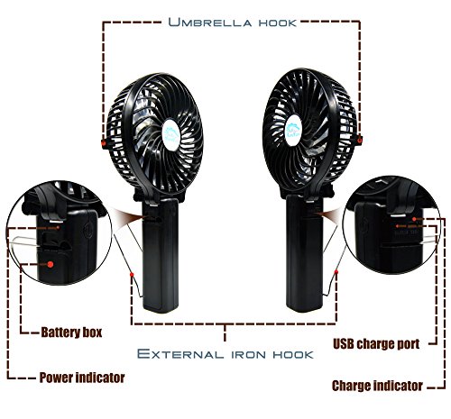 Rechargeable Battary the li-lion battery operated fan ,rechargeable and replaceable ,which can be charged by comupter ,usb charger,power bank【2000mA 18650 Li-ion Battery included,3 hours charging time can be used 3-8 hours】
