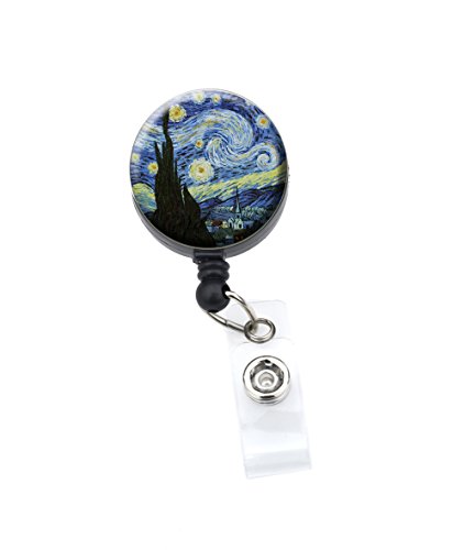 Sizzle City Rhinestone Badge Reels, ID Badge Holder, Name Tag (Alligator/Swivel Clip, Van Gogh- Starry Night)