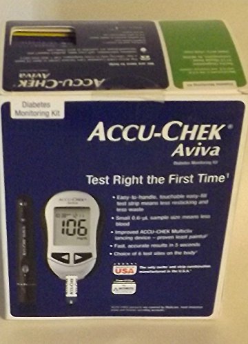 -. Binding : Health and Beauty -. Brand : Accu Chek -. EAN : 0365702193109 -. Feature : Give fast and accurate results within 5-second / Choose from five other areas of your body, you are able to test from your palm, forearm / upper arm, calf, thigh or finger - whichever works best for you / Test right the first time! The right technology helps make every strip count / Check over 150 quality check points to detect and prevent unreliable results -. Label : Roche -. Manufacturer : Roche -. Model : 365702193109 -. MPN : 365702193109 -. PackageQuantity : 1 -. PartNumber : 365702193109 -. ProductGroup : Health and Beauty -. ProductTypeName : HEALTH_PERSONAL_CARE -. Publisher : Roche -. Studio : Roche -. Title : Accu-chek Aviva Diabetes Monitoring Kit - Meter System with Ten Test Strips (New Design) -. UPC : 365702193109