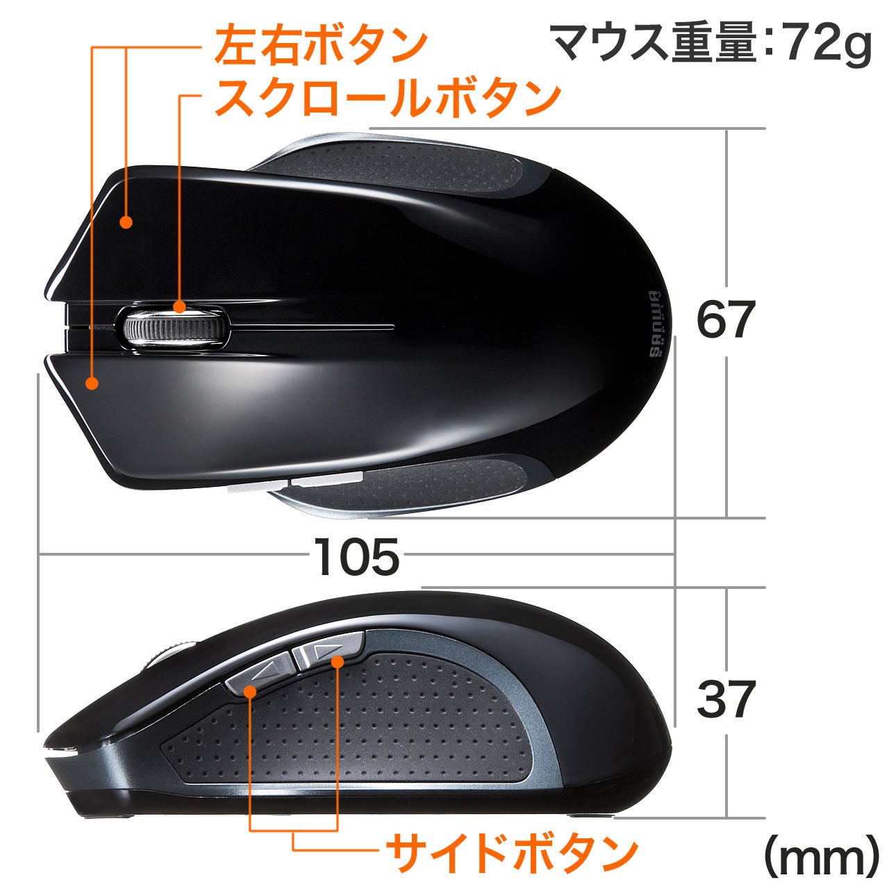■ Size (Mouse): W 67 × D 105 × H 37 mm · 72 g