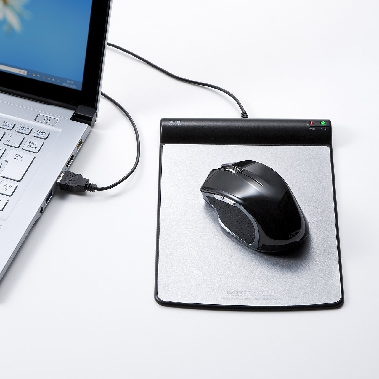 ※ When using this product on a metal product such as a steel desk, radio waves are irregularly reflected and the operation of the mouse is disturbed.