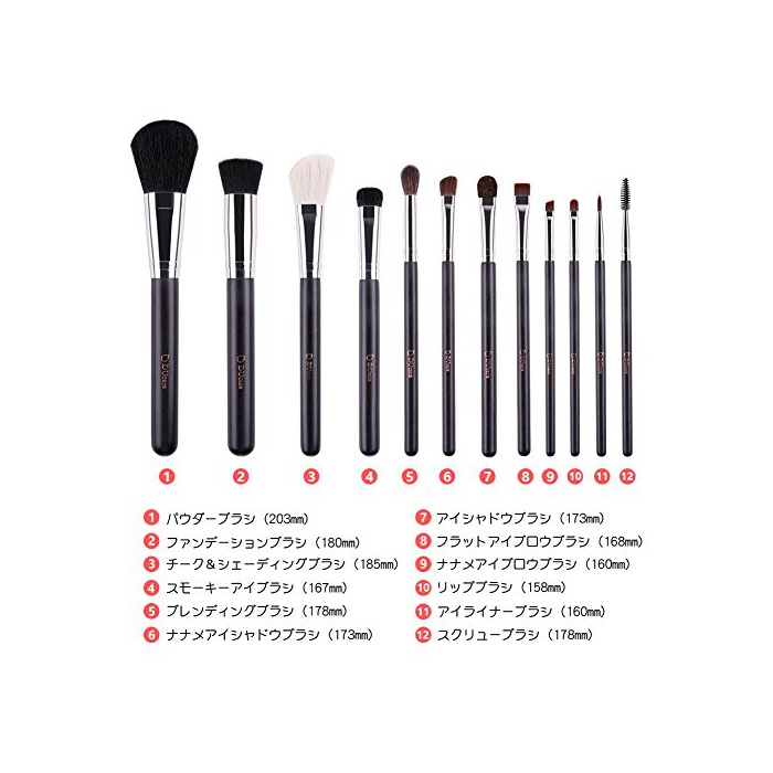 원본상품명: DUcare ドゥケア 化粧筆 高級天然毛メイクブラシセット 12本セット 白尖峰&馬毛をふんだんに使用 柄はパ?ル入り レザ?風化粧ポ?チ付き