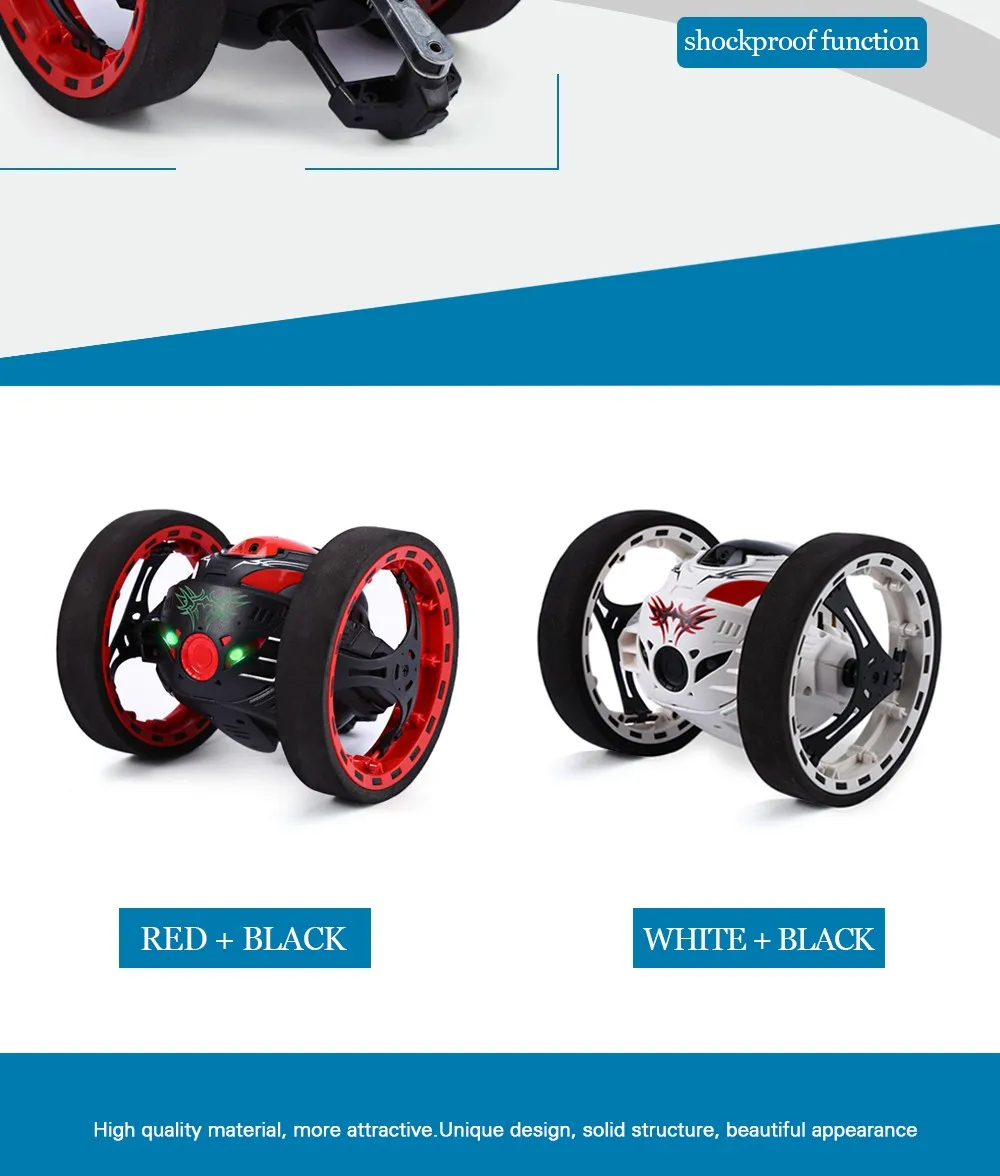 Look at this PEG bounce car! Super cutting-edge technology makes bounce car achieve more accurate than any other RC toy car steering. Equipped with flexible wheels, providing high speed performance and better flexibility. You won't be regret to take one.