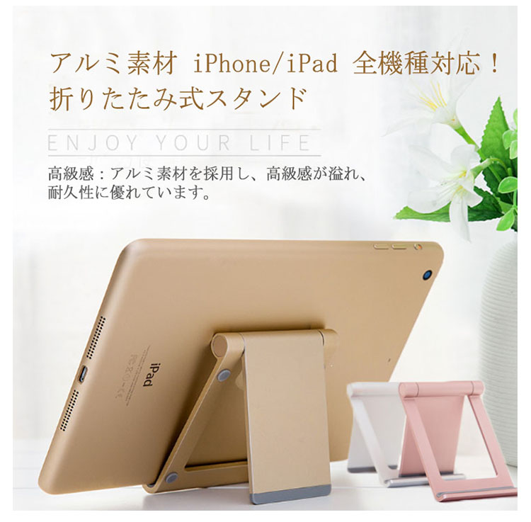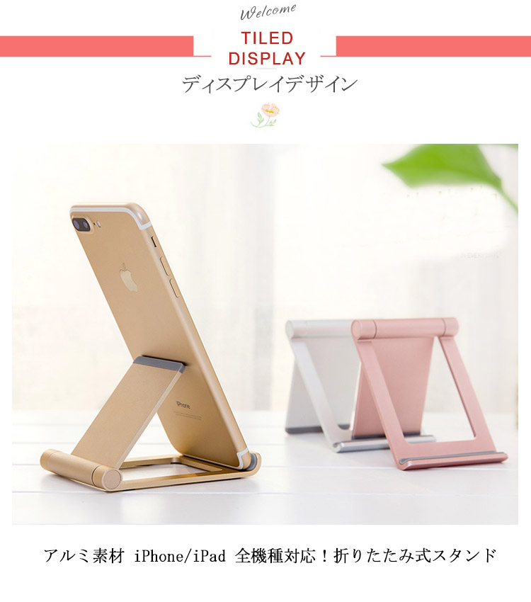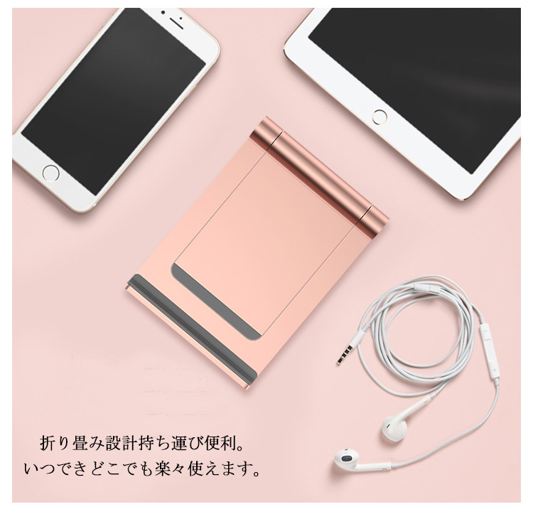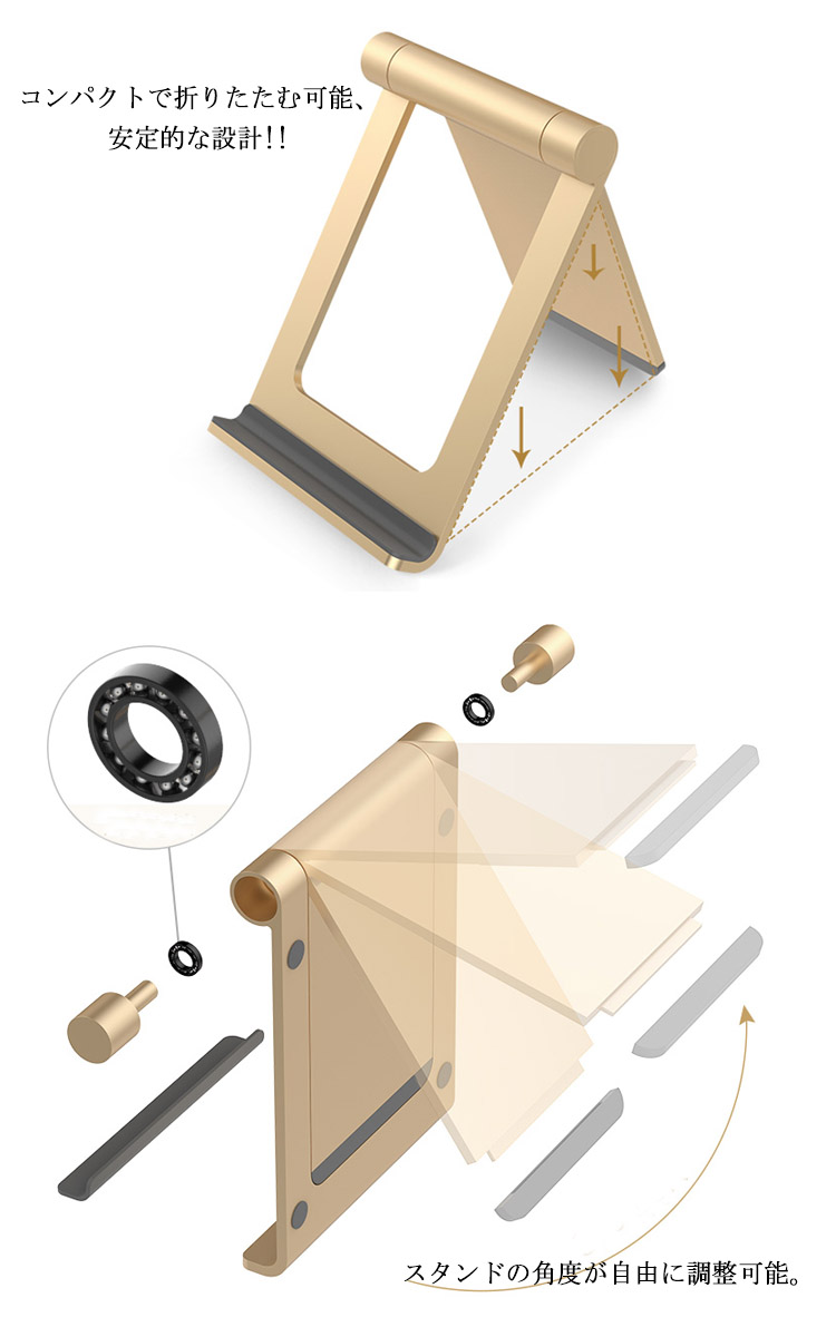 | 高級感:アルミ素材を採用し、高級感が溢れ、耐久性に優れています。 縦置き、横置きどちらでも使用可能ですから、動画、画像、電子書籍等を楽に楽しめます。 コンパクトで折りたたむ可能、安定的な設計!!スマホやタブレットを保護し、傷つけにくくなります。 | |