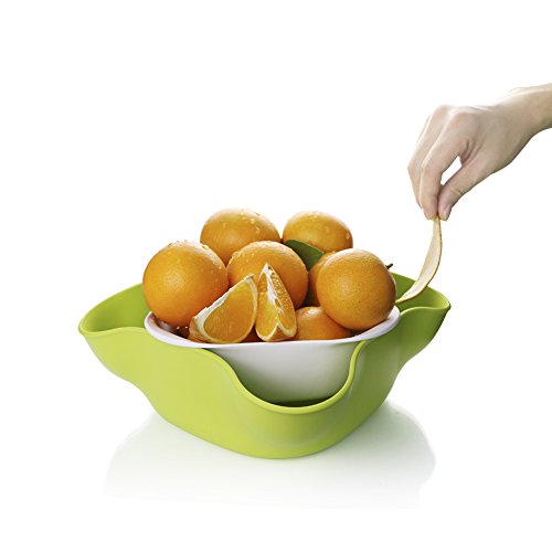 Home and Above will solve the problem of how to gracefully dispose of pits, shells and food waste. Its unique design features an inner bowl for serving fruits, candies, nuts, salads, etc. which nests inside an outer bowl into which guests can discreetly place what's inedible. No unsightly remnants are visible, and you won't need extra bowls or a trash can to collect the waste.