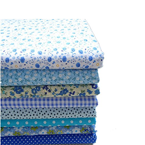 KINGSO 8PCS Cotton Fabric Bundles Quilting Sewing Patchwork Cloths DIY Craft 19.7x19.7inch Blue Series