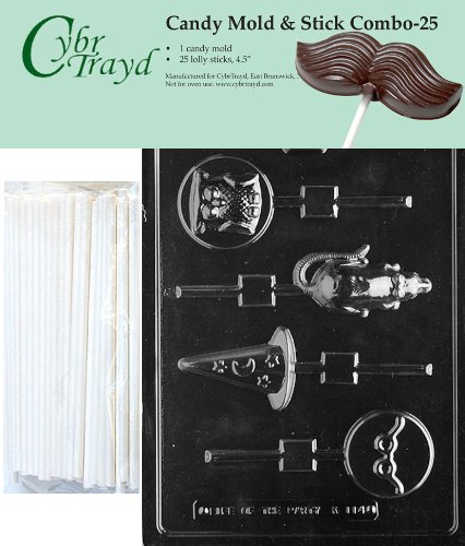 Cybrtrayd 45St25-K114 Harry The Wizard Assorted Lolly Chocolate Candy Mold with 25 Cybrtrayd 4.5" Lollipop Sticks