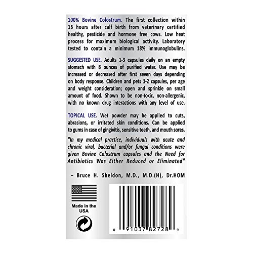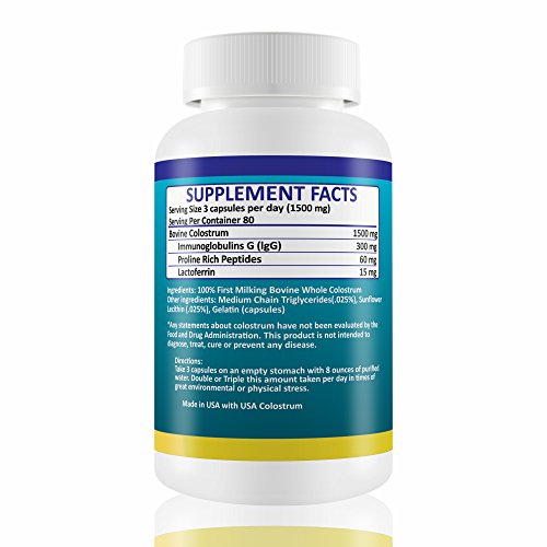 -. Title : Colostrum Bovine 150 Capsules #1 Best Value on Amazon 50% DISCOUNT TODAY! 100% Whole Nothing Added, Collected 1st Milking Only, Maximum Biological Activity, Contains Natural Occurring Probiotics, High Ig, Ld, Plus Lactoferrin, Nutritional Immune Support Supplement for Pets, Dogs, Kids, Adults, Athletes, Guaranteed