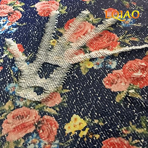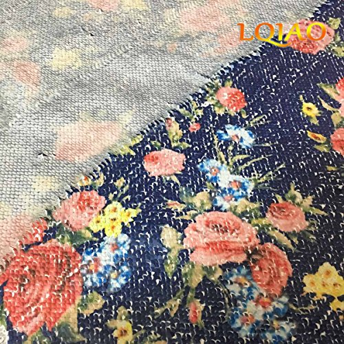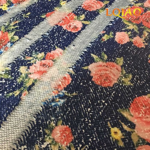 LQIAO Mermaid Sequin Fabric Color Changing Reversible Shimmer Flip Up Fabric Emboriderly Sold by half of yard Print Rose Flower Shape