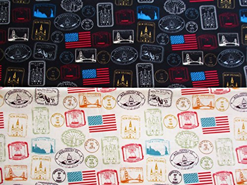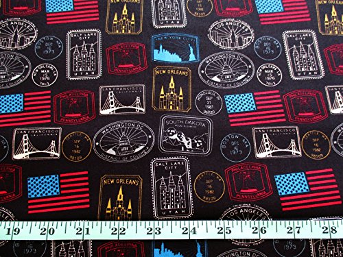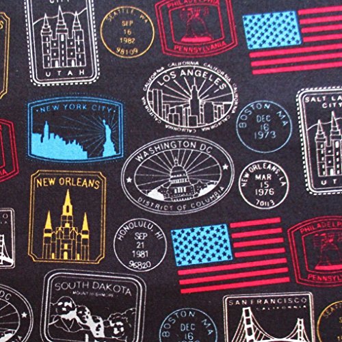 American Flag States America Theme United States on Black 36 by 36-Inch Wide (1 Yard) (CT681)