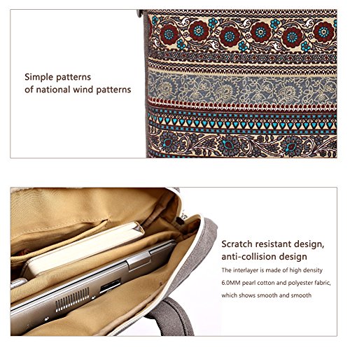 -. Feature : Strong,Wear-resisting macbook laptop bag: together100% the original ecological cotton refined from the embryo cloth, the standard of the latitude and longitude of the 16 weft knitting fabrics, professional water treatment process / This Laptop Bags Case Uses a Rich national wind pattern pattern, the liner with high quality fluff, reduce the laptop tablet and macbook friction, to prevent scratches / Front zipper pocket, enough space to keep pens, mobile phone, small tablet, cables, chargers, power bank and business essentials / This Single Shoulder Computer Bag Removable/adjustable shoulder strap enable you to carry in comfort, and can be tucked away in the back pocket when not needed / Compatible with 11-15.6" Macbook Air Pro/Pro Retina, Most 11 - 15.6" Laptop Ultrabook Notebook MacBook Chromebook