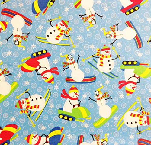 "Welcome Snow" Snowman Winter Fun on Blue Fabric 100% Cotton (Great for Quilting, Sewing, Craft Projects, Throw Pillows, Curtains, Valances & More) 1 Yard X 44"