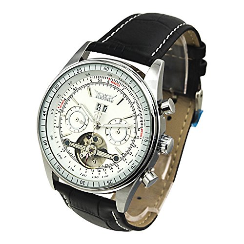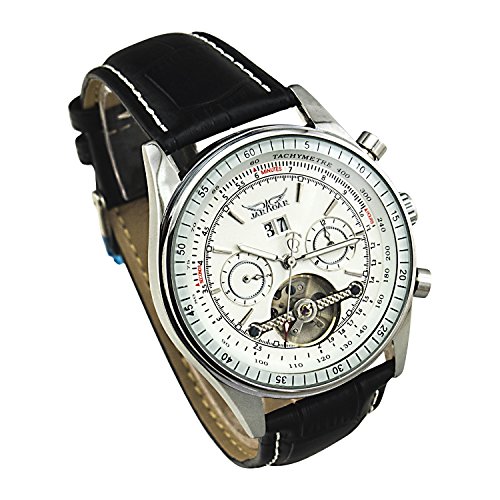 GuTe Mechanical Gute출품 날짜에 요일 표시 맨즈 가죽 밴드 보다 좋은 품질 심플 캐주얼 캐주얼 세세한 문자판 빅 케이스 보기 편리하 화이트 자동 감기 손목시계